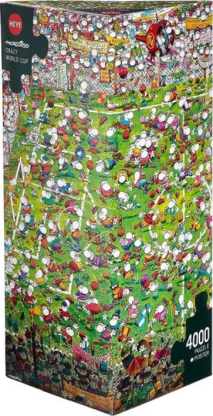 Puzzle od karikaturistu Mordilla balené v netradičnej trojbokej krabici, ktorá obsahuje plagát ako predlohu na skladanie.