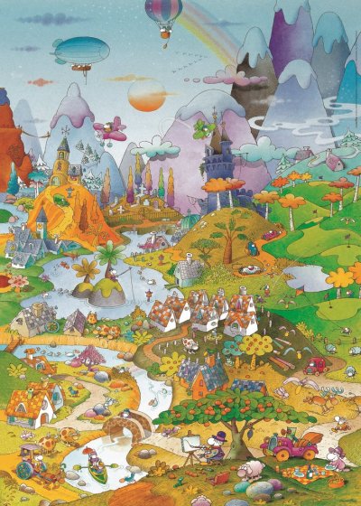 Idylka pri jazere má svoje pokračovanie pri poli. Rozmer zloženého puzzle cca 50 x 70 cm
