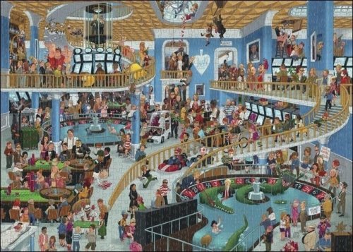 Puzzle od umelca Uli Oesterle balené v netradičnej trojbokej krabici. Karikatúra plná farieb a tvarov. Balenie obsahuje plagát ako predlohu na skladanie. Rozmer zloženého puzzle cca 70x50 cm