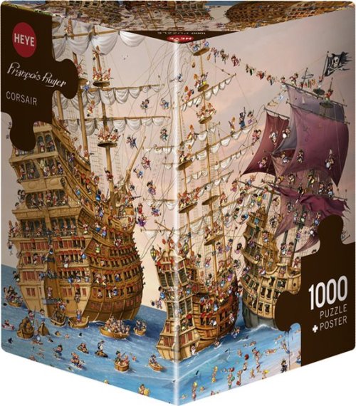 Puzzle od karikaturistu Francois Ruyera balené v netradičnej trojbokej krabici, ktorá obsahuje plagát ako predlohu na skladanie.