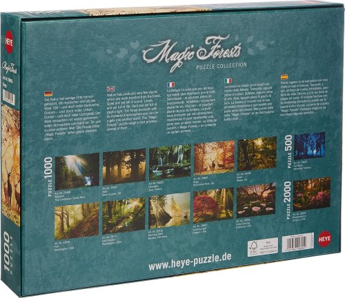 Unikátna kolekcia puzzle od HEYE zo série Magic Forests (Magický les) sú prekrásne fotografie, na ktorých je lesná príroda zachytená fascinujúcim spôsobom. Kúzelné a tajomné zákutia lesa. Tichá a napriek tomu plná zvukov. Osamelá a tak plná života. Potemnelá a napriek tomu zaliata slnečnými lúčmi. Les s okúzľujúcou atmosférou je ako brána do iného sveta.