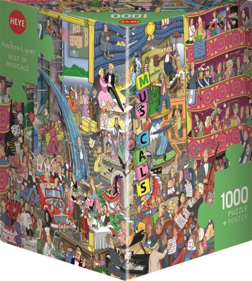 Puzzle od karikaturistu menom Lyon v netradičnej trojbokej krabici, ktorá obsahuje plagát ako predlohu na skladanie. Rozmer zloženého puzzle cca 70 x 50 cm