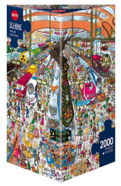 Puzzle od nemeckého umelca Doro Cristopha Schöna balené v netradičnej trojbokej krabici je výzvou pre každého milovníka skladania. Poskladajte si rušnú vlakovú stanicu plnú vlakových súprav, uponáhľaných postáv a tradičného nádražného chaosu.