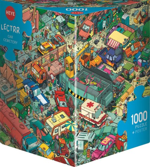 Puzzle od karikaturistu menom Lectrr v netradičnej trojbokej krabici, ktorá obsahuje plagát ako predlohu na skladanie. Rozmer zloženého puzzle cca 70 x 50 cm
