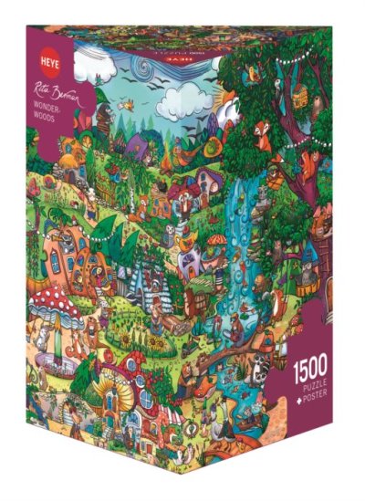 Puzzle balené v netradičnej trojbokej krabici. Autorom obrázku je Rita Berman.