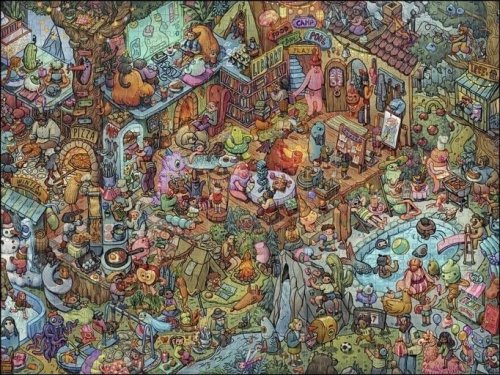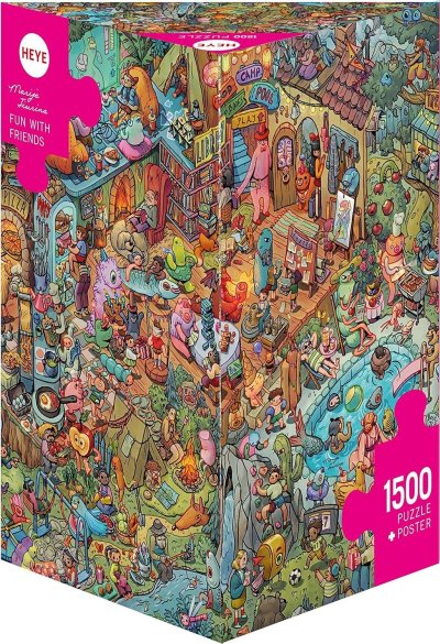 Puzzle od karikaturistu Marija Tiurina balené v netradičnej trojbokej krabici, ktorá obsahuje plagát ako predlohu na skladanie. Rozmer zloženého puzzle cca 80 x 60 cm
