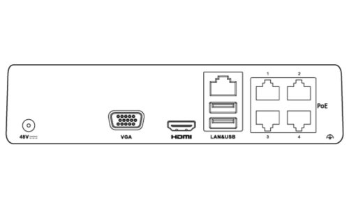 Porty: 1× HDMI, 1× VGA, 4× RJ-45 (PoE 802.3af/at), 1× 10/100 Mbps RJ-45, 2× USB 2.0
