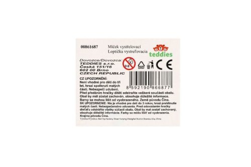 Vyskakujúca loptička z peny zabaví snáď každého! Loptička má aj ručičky a tiež telo, ktoré je z bužírky. Telo postavte na stôl alebo zem. Stlačte a pustite! Loptička parádne vyskočí. Veľkosť loptičky s telom: 10 cm Vhodné pre deti od 3 rokov.