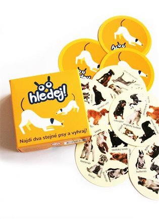 Zábavná spoločenská hra pre 2-8 hráčov od 6 do 99 rokov. Preverí vašu rýchlosť a postreh. Balenie obsahuje 62 kartičiek, na každej z nich 6 psov z 31 rôznych plemien. Na akejkoľvek dvojici kariet nájdete vždy len dvoch rovnakých psov. Kto ich nájde ako prvý, získava bod. Dokážete nájsť celú svorku? Skúste to, nudiť sa pri tom určite nebudete.