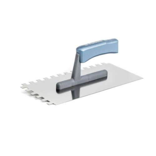 hladítko nerezové 270 x 130 mm - zub buková, lakovaná, ergonomická rukoväť nerezový, kyseline odolný plech hr. 0,7 mm nanášanie lepidiel, veľkosť zubov proporcionálne k veľkosti obkladačiek