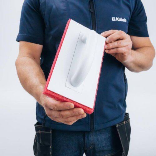 hladítko plastové s podkladom 280 x 140 mm plast: PS - polystyrén ergonomická, tvarovaná rukoväť podklad: molitan hrubý, hr. - 20 mm na škárovanie