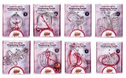Tento hlavolam potrápi Vašu hlavu aj ruky. Hlavolamy posúvajú hranicu trpezlivosti a rozvíja jemnú motoriku a pamäť.Cena uvedená za 1kus! mix druhov v krabičke 8,5 x10x2cm 24ks v boxe. Viac druhov – náhodný výber.