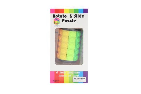 Plastový hlavolam v tvare valca. Pomocou otáčania a posúvania je možné pohybovať časťami hlavolamu. Rozmer hlavolamu cca 7 cm. Rozmery balenia cca 7 x 14 x 5,5 cm. Vek 3+