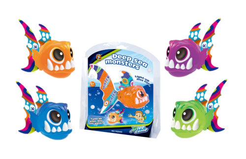 Hlbokomorské príšera v 4 rôznych farbách. Skvelá pre vodné hrátky. Pri dotyku s vodu sa automaticky zapne. Vhodná do bazéna aj do vane.