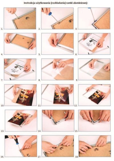 Rámček vyrobený z odolného hliníka Predné krycie plastové „sklo“ Zadná stena z HDF drevenej dosky S háčikom na zavesenie Rozmery orámovania: šírka 6,0 mm x výška 20,0 mm Rozmery: 700 x 1000 mm