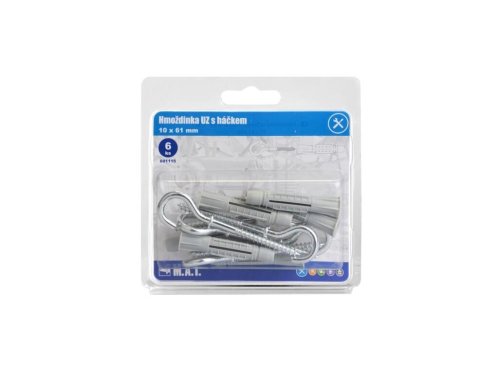 rozmery (pr. x D): 10 x 61 mm materiál: biely zinok háčik 6 ks