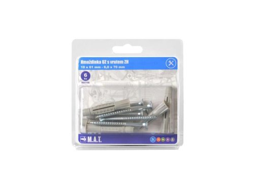 hmoždinka uzľovacia s lemom 10x61 UH-L vrut un. polozávit 6x70mm ZB Balenie obsahuje 6ks Kompletná sada obsahuje hmoždinku a vrut, ktorá zaručuje jednoduchú a spoľahlivú montáž.