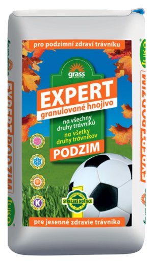 Hnojivo EXPERT JESEŇ je granulované hnojivo, vhodné na jesenné a neskoré jesenné hnojenie všetkých druhov trávnikov. Vysokým obsahom draslíka sa zabezpečí vysoká odolnosť trávnika proti vymŕzaniu a napadnutiu hubovými chorobami, ktoré sa šíria hlavne pod snehovou pokrývkou. Použitím tohto hnojiva na začiatku leta (jún), sa zvýši odolnosť trávnika proti suchu v priebehu letných mesiacov. Jemná granulácia, potláčanie machu v trávniku.