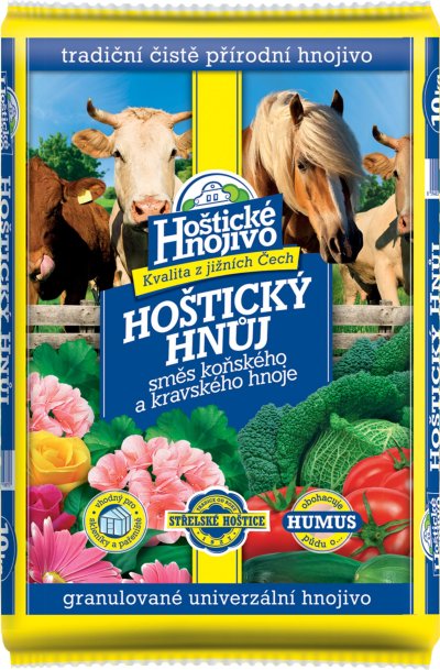 Čisto prírodné organické hnojivo - zmes kravského a konského hnoja s prídavkom rohoviny. Obsahuje organické látky so základnými živinami NPK a ďalšie stopové prvky. Hodí sa nielen na univerzálne použitie v celej záhrade, ale predovšetkým na zdravú výživu ovocia a zeleniny. Aplikuje sa z jari alebo na jeseň v určenej dávke. Hnojivo sa rovnomerne rozhodí, mierne sa zapraví do pôdy a následne sa dostatočne zavlaží.
