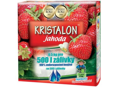 Kristalon jahoda 0,5 kg zaistí rýchlejší počiatočný rast vďaka priamej absorpcii fosforu, rýchlejší nástup produkčného obdobia. Je vhodné pre všetky druhy jahôd pestovaných vo voľnej pôde aj v nádobách. Dávkovanie: 1 odmerka (10g) hnojiva sa rozpustí v 10 l vody a vystačí pre približne 5 m2 plochy. Balenie 0,5kg je určené pre 500 l zálievky celkom.