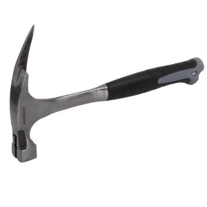 hlava a násada z jedného kusu ocele dvojkomponentná rukoväť úderová plocha kladiva s hlbokými drážkami pevná špica na páčenie výrez s magnetom štrbina na vyťahovanie klincov
