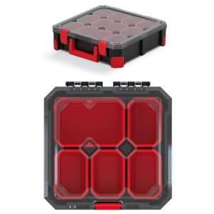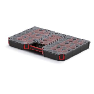 Organizér na dielenské náčinie, 2 odnímateľné priehradky, kovové spony na pevné uzavretie veka, rukoväť uľahčujúca prenášanie boxu, súčasť modulárneho systému Stack'N'Roll.
