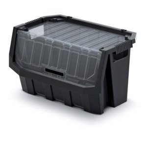 box stohovací s háčikmi pre lištu na stenu je vhodný na ukladanie drobného náradia, skrutiek atď.