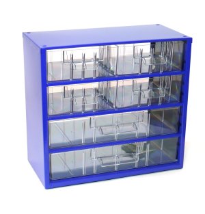 Skrinka 2 veľkosti, 4 stredné, 2 veľké zásuvky, 30,5 x 28 x 15,5 cm, kov.