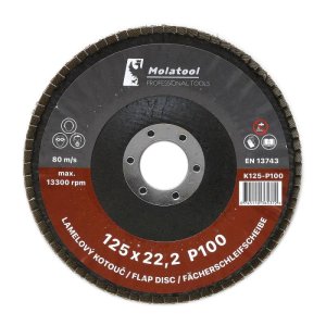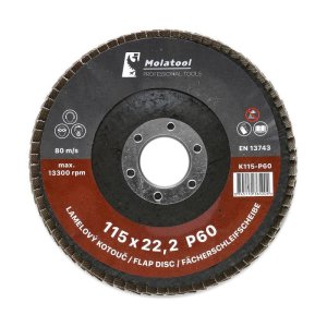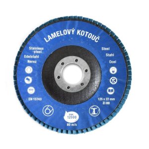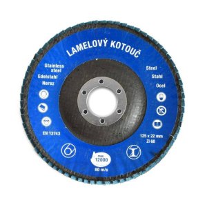 brúsny lamelový kotúč na brúsenie ocelí, plastov a dre určený na opracovanie rovinných i tvarových plôch až po dokončovaciu prácu na brúsenie zvarov, hrán, nerovností a tiež na odstraňovanie náterov a koróz.