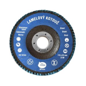 brúsny lamelový kotúč na brúsenie ocelí, plastov a dreva kotúč je určený na opracovanie rovinných i tvarových plôch až po dokončovacie práce.