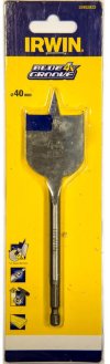 Vrták do dreva plochý BLUE GROOVE 40 mm IRWIN Rozmery: 40 mm Dĺžka vrtáka: 157 mm Stopka: šesťhranná 4 x rýchlejšia ako štandardné ploché vrtáky.