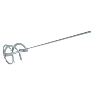 miešadlo špirálové so závitom povrchová úprava: prášková farba hriadeľ: kruhová tyč 14 mm, závit M14 spodný kruh: ø 10 mm použitie: tuhý miešaný materiál, malty, betónové potery, tmely, omietkoviny