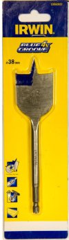 Vrták do dreva plochý BLUE GROOVE 38 mm IRWIN Rozmery: 38 mm Dĺžka vrtáka: 157 mm Stopka: šesťhranná 4 x rýchlejšia ako štandardné ploché vrtáky.