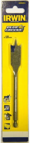 Vrták do dreva plochý BLUE GROOVE 18 mm IRWIN Rozmery: 18 mm Dĺžka vrtáka: 157 mm Stopka: šesťhranná 4 x rýchlejšia ako štandardné ploché vrtáky.