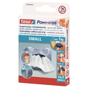 malé obojstranne samolepiace prúžky Tesa Powerstrips® penové prúžky vhodné na upevnenie menších a plochých predmetov do hmotnosti 2 kg lepia sa na rovný a dostatočne pevný povrch (nevhodné na použitie …