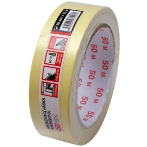 Lepiaca papierová maskovacia páska je vhodná predovšetkým pri maľovaní izieb, na vytvorenie presných hrán a farebných prechodov. Šírka páskay 50 mm, dĺžka návinu 50 metrov. Účinne lepí do 60 °C.