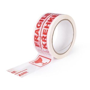 Baliaca páska s nápisom Fragile (krehké) a piktogramom pohára Páska je určená na prelepovanie a značenie obalov s krehkým obsahom Akrylové lepidlo založené na báze vody, po aplikácii dosahuje veľmi rýchlo …