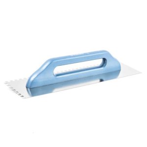 hladítko pre nanášanie lepiacej malty v technike ukladania obkladu tlakom zaisťuje maximálne pokrytie obkladu lepidlom ergonomická, vyvážená a profilovaná 3K rukoväť typu soft, základ hladidla z polyamidu.