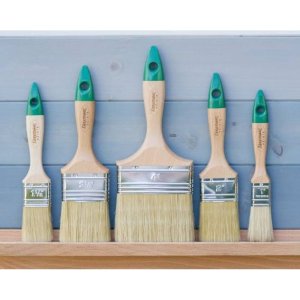 Profesionálne ploché štetce majú lakovanú rukoväť z bukového dreva a zelený otvorom na zavesenie. Plechová objímka je z vysoko kvalitného pocínovaného plechu striebornej farby.