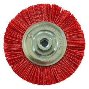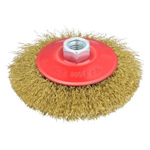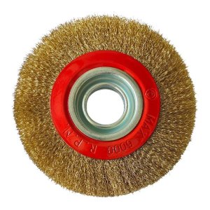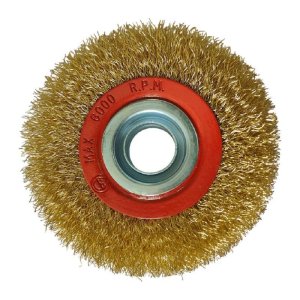 kotúč okružný - oceľový drôt, vlnitý na použitie v stolných brúskach alebo leštičkách otvor 12,7, 16 mm vhodný na odstraňovanie farieb, hrdze, otrepov a zvyškov po zváraní a iných nečistôt priemer: 150 mm