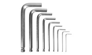 sada šesťhranných kľúčov (imbusov) s guličkou - 9 ks pre širšie využitie - odklon od osi skrutky až do ± 25° vyrobené z kvalitnej chromvanadiovej ocele, tvrdené v celej dĺžke rozmery: 1,5; 2; 2,5; 3; 4; 5; …