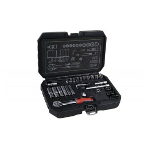 Gola sada 1/4" materiály: z vysoko kvalitnej chróm-vanádiovej ocele, niklová povrchová úprava, hroty bitov zo zliatiny ocele S2, račne majú jemné delenie 72 zubov, telo račne z CrV ocele, zubový mechanizmus …