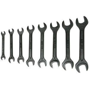 kľúče otvorené obojstranné - sada 8 ks vyrobené kovaním z vysoko kvalitnej CrV ocele rozmery kľúčov: 6x7; 8x9; 10x11; 12x13; 14x15; 16x17; 18x19; 20x22 mm sada je dodávaná na plastovom držiaku DIN 3110