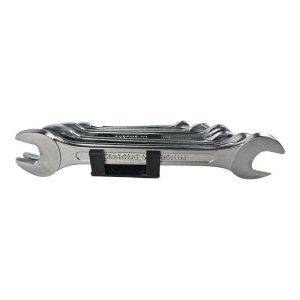 kľúče otvorené obojstranné - sada 6ks vyrobené kovaním z vysoko kvalitnej CrV ocele rozmery kľúčov: 6x7; 8x9; 10x11; 12x13; 14x15; 16x17 mm sada je dodávaná na plastovom držiaku DIN 3110