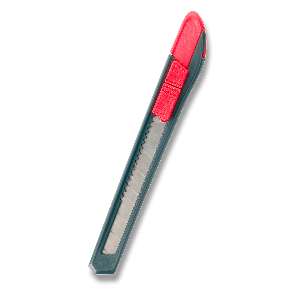 Odlamovací nôž. Zaťahovateľné odlamovacie brity o šírke 9 mm.