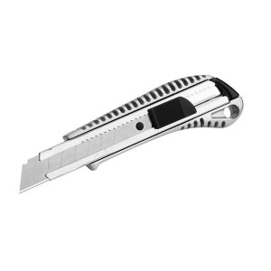 celokovové telo noža protišmyková rukoväť kovová vodiaca lišta automatická posuvná aretácia so skrutkovou poistkou šírka čepele 25mm