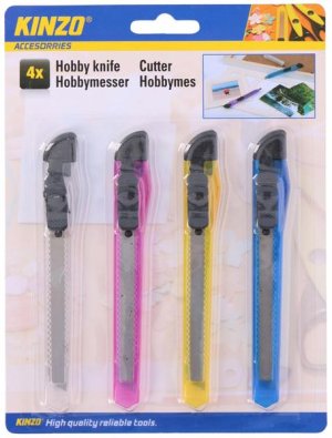 - odlamovací nôž hobby prevedenie - plastový kryt, kovová vodiaca lišta, tlačidlový posuv s aretáciou, vymeniteľný brit - EAN 8590804010296
