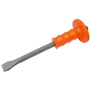 sekáč plochý s plastovou ochranou vyrobený z kalenej CrV ocele vhodný pre prácu s kameňom, tehlou, stavebným materiálom