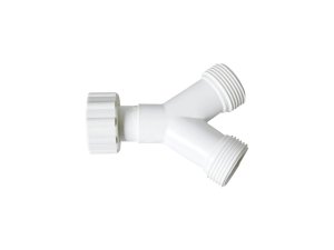 rozdvojka pre prívodné hadice plastová rozdvojka pre prívodné práčkové hadice na montáž na ventil koncovky pre pripojenie: 2 x 3/4" vonkajší závit, 1 x 3/4" matica