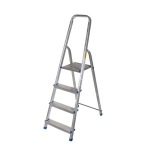 Typ - 1x4 jednostranné s madlom Pevná 4-stupňová rebríková konštrukcia s jednostranným vstupom Bezpečné madlo 60 cm Široká pracovná plošina 25 cm x 26 cm Vrúbkovaná plocha schodíkov.